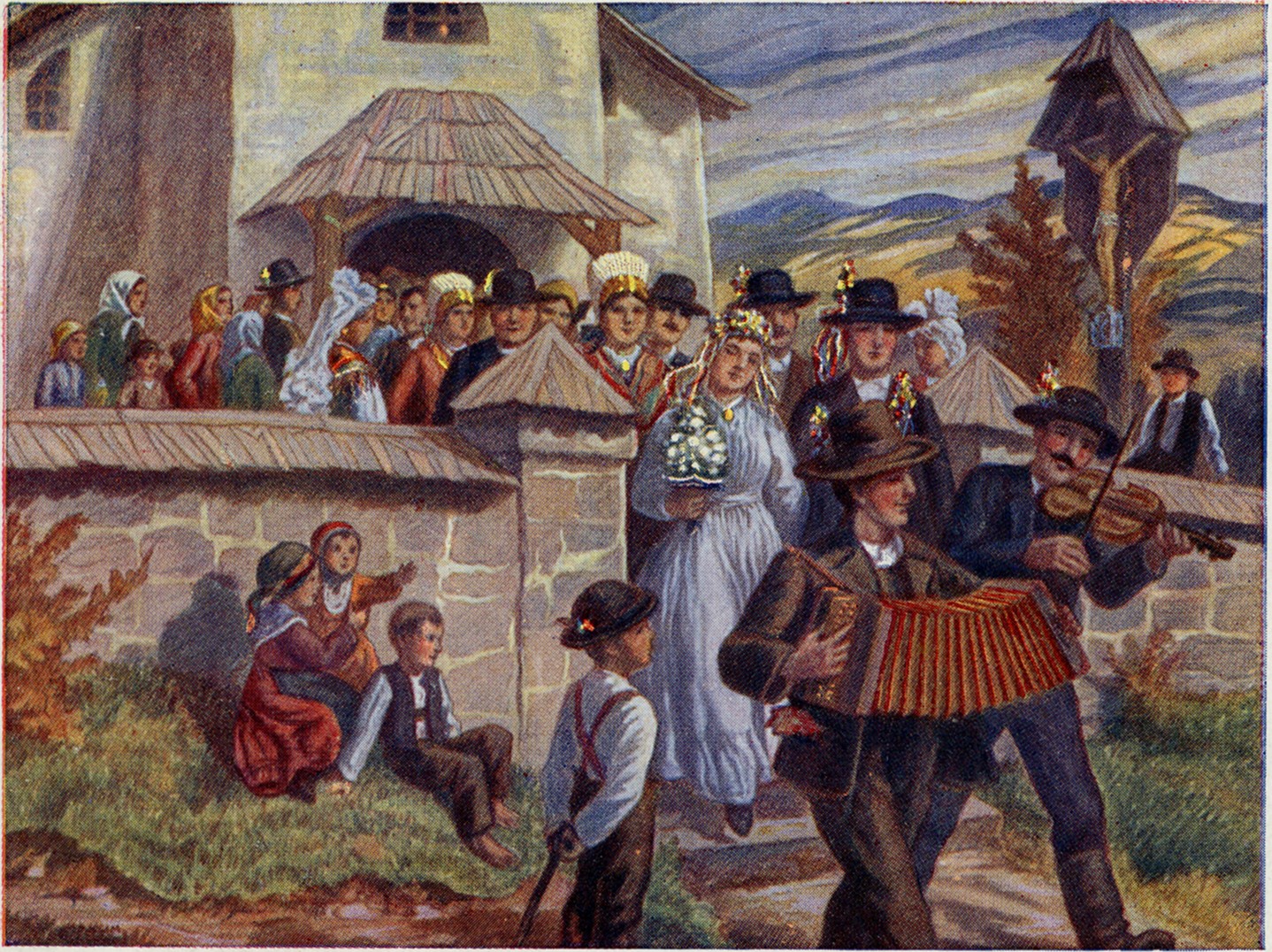Kot vidimo, ženske na fotografiji še nosijo bela platnena in bombažna oblačila, moški pa (pod vplivom Amerike in Amerikancev ter mestne oblačilne mode) že obleko iz industrijskega blaga.