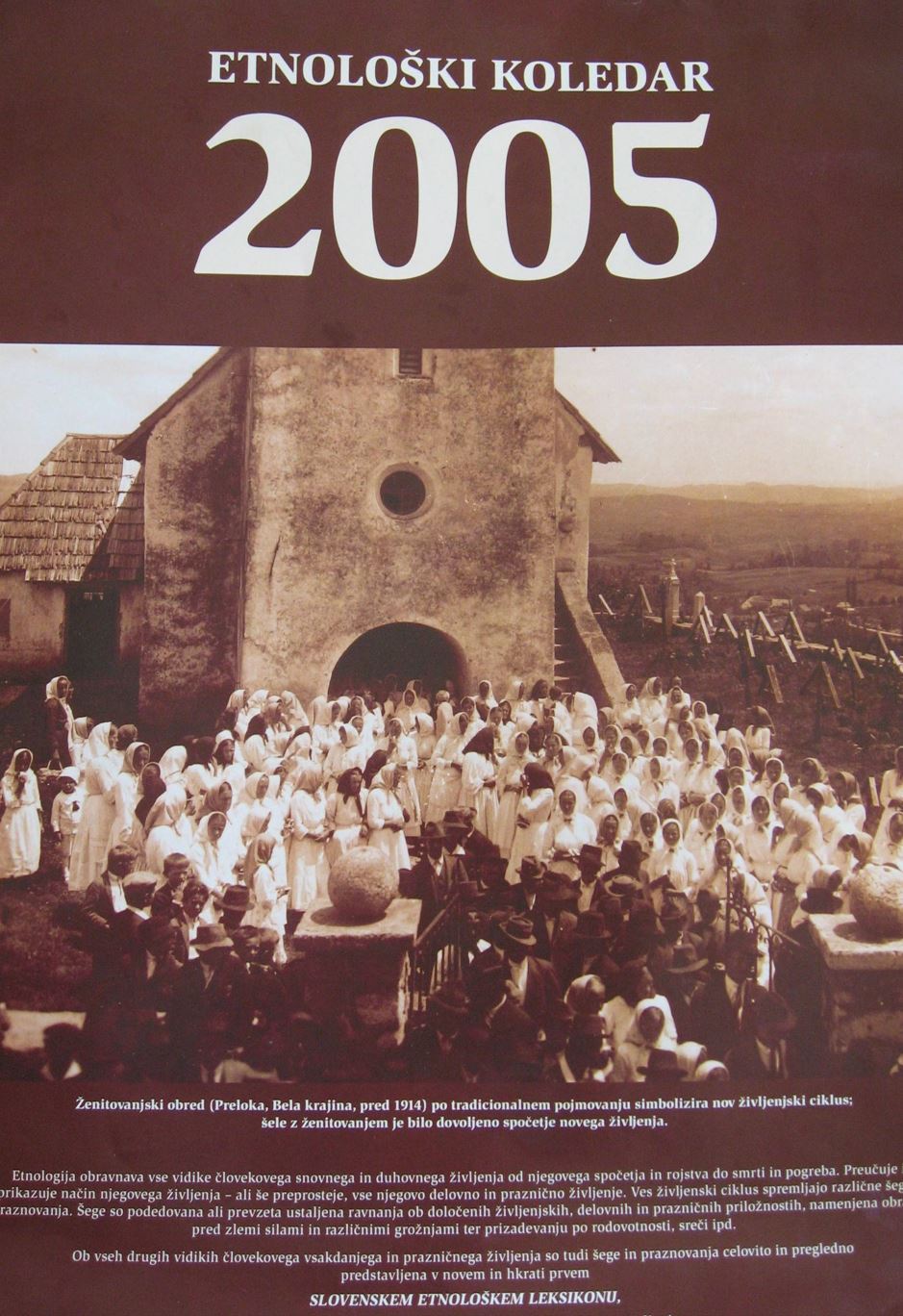 Iz Etnografskega muzeja prihaja še ena tiskovina s tem preloškim prizorom na naslovnici: njihov koledar za leto 2005. Le da se jim Hibšerjev »odhod od maše« malo zmeša z Gasparijevima svatbama. Fotografijo podnaslovijo: »Ženitovanjski obred (Preloka, Bela krajina, pred 1914) …« Pač spregledajo, da na fotografiji ni tistih dveh, brez katerih vendar ni ženitovanjskega obreda, in fotografijo postarajo za najmanj 10 let.