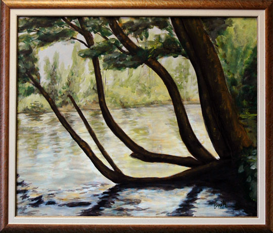 Motiv slike, ki jo Binko daruje za našo dražbo, je reka, ki jo vidi in sliši iz svoje hiše. Kolpa. Kolpa kot motiv, ki je nam Belokranjcem tako ljub in blizu. Kolpa kot naša belokranjska mati, v kateri se počutimo kot doma, skoraj bi lahko rekli – kot riba v vodi.