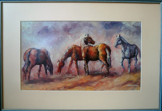 Motiv s slike, ki jo daruje za preloško šolo, Konji, ga je pritegnil neko jutro, ko se je peljal s kolesom. Čreda konj se je mirno pasla na travniku, potem pa se je na lepem od nekod pojavil beli konj in v hipu se je v zraku začutilo vznemirjenje ... In že je bila tu tudi zgodba. »Na mojih slikah je vedno zgodba. Če ni zgodbe, ni slike,« pravi slikar Ivan Geder.