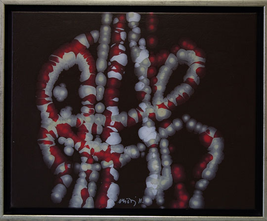 Morda pa nam slikar takole razkriva drugo skrajnost - neverjetne podrobnosti, ki jih prav tako ni videti s prostim očesom: atome kot tiste osnovne gradnike vsega, kar je; atome, ki se povezujejo v verigaste molekule in z njihovim združevanjem nastajajo vse, tudi najboljše in najbolj zapletene stvari na tem svetu.