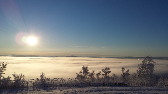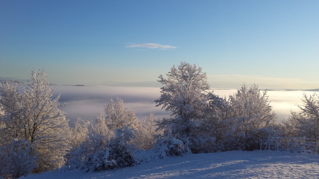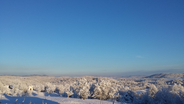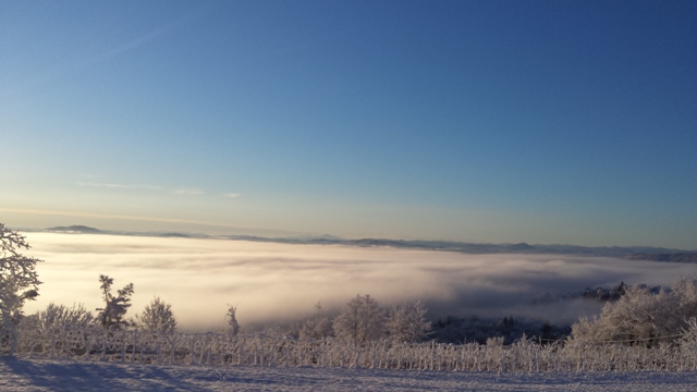 Medtem ko še vedno čakamo na pravilni odgovor na nagradno vprašanje št. 5, si poglejmo nekaj aktualnih utrinkov in dogodkov iz naše vasice. Sneženje s 30. na 31. januar nas je končno le spomnilo, da se zima še ni poslovila. In tule so prizori, ki jih je Marko Simčič zabeležil 31. januarja zjutraj: pogled na vse štiri strani neba z našega hribčka, kjer sta cerkev in šola. Sončni vzhod, Preloka obsijana s soncem in morje megle vsenaokoli ...