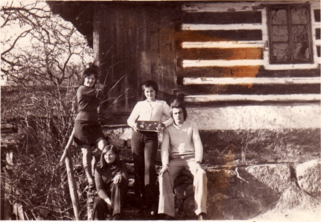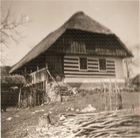 Tretja fotografija je nastala spomladi leta 1974. Lepo vidni so kamniti podstavek hiše in iz debelih plohov (ostenjki) sestavljena lesena nadgradnja ter kamnite stopnice in iz desk sestavljena vhodna vrata. V ozadju pa je vidna lopa, prav tako pokrita s slamo.