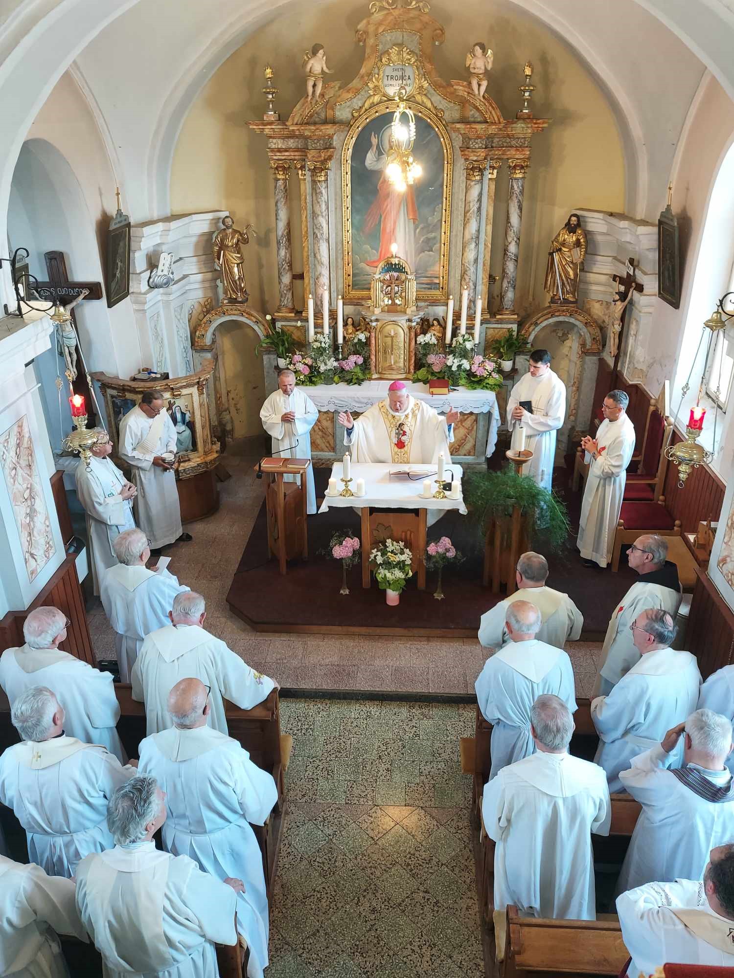 Ponedeljek, 17. junija 2024, je bil za našo malo vasico spet poseben dan. V naši župnijski cerkvi sv. Trojice so se spet zbrali številni duhovniki od blizu in daleč, da bi počastili spomin na svojega nekdanjega sošolca in prijatelja s Teološke fakultete – Preločana Jureta Ivanušiča, ki ga je Bog vzel k sebi že pred 50 leti, torej le leto dni po njegovi in njihovi novi maši.